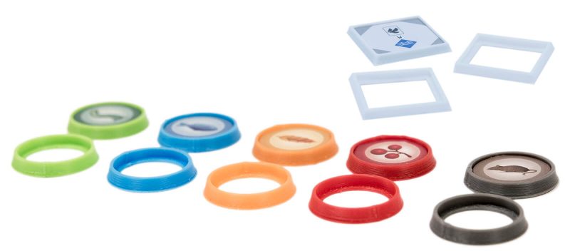 Na Skrzydłach gumowe wielokolorowe osłony na żetony.